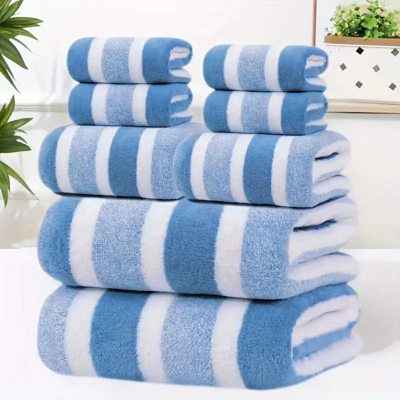 8-Piece Luxury Hotel-Grade Bath Towel Set – Lint-Free, Quick-Dry, Super Soft Two-Color Striped Towels